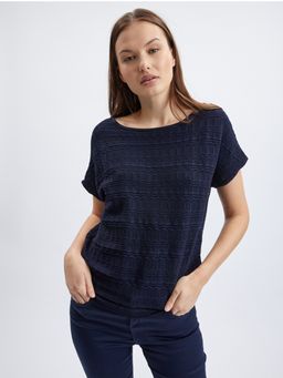 Ciemnoniebieski sweter damski z krótkim rękawem ORSAY