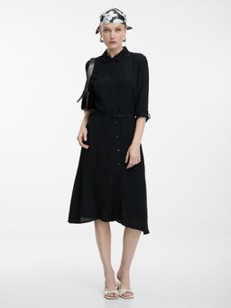 Czarna damska sukienka koszulowa do kolan ORSAY