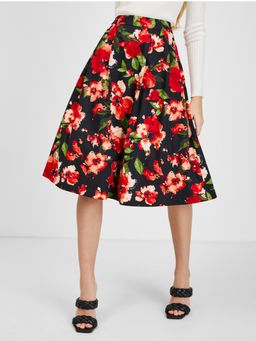 Czerwono-czarna spódnica w kwiaty ORSAY