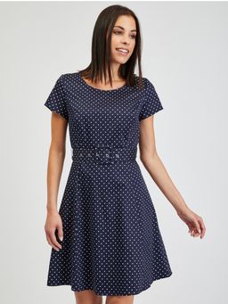 Granatowa sukienka w kropki z paskiem ORSAY