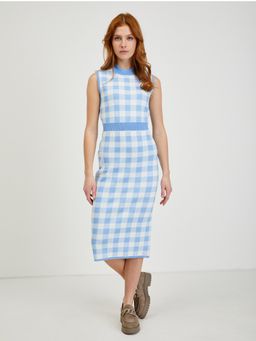 Jasnoniebieska sukienka midi w kratkę ORSAY