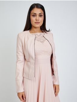 Jasnoróżowa kurtka damska skórzana ORSAY