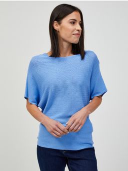 Niebieski lekki wzorzysty sweter z krótkim rękawem ORSAY
