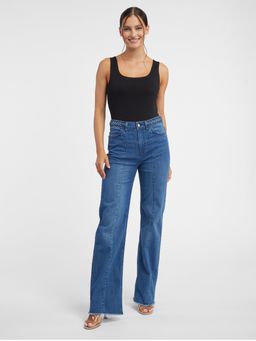 Niebieskie jeansy damskie z szeroką nogawką ORSAY