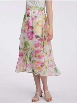 Różowo-biała spódnica midi w kwiaty ORSAY